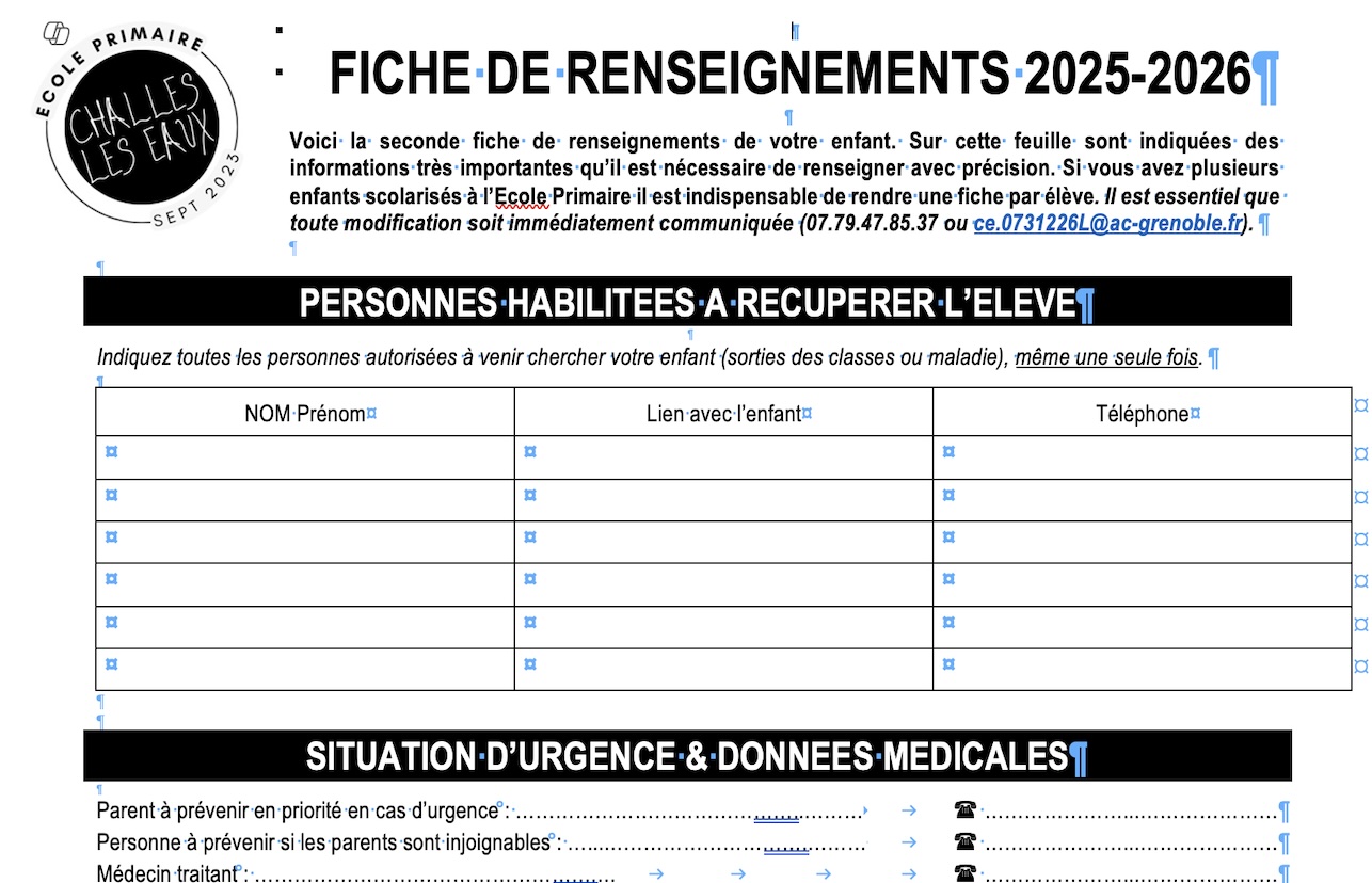 A l'occasion de la rentrée des classes, un certain nombre de documents vous seront distribués.