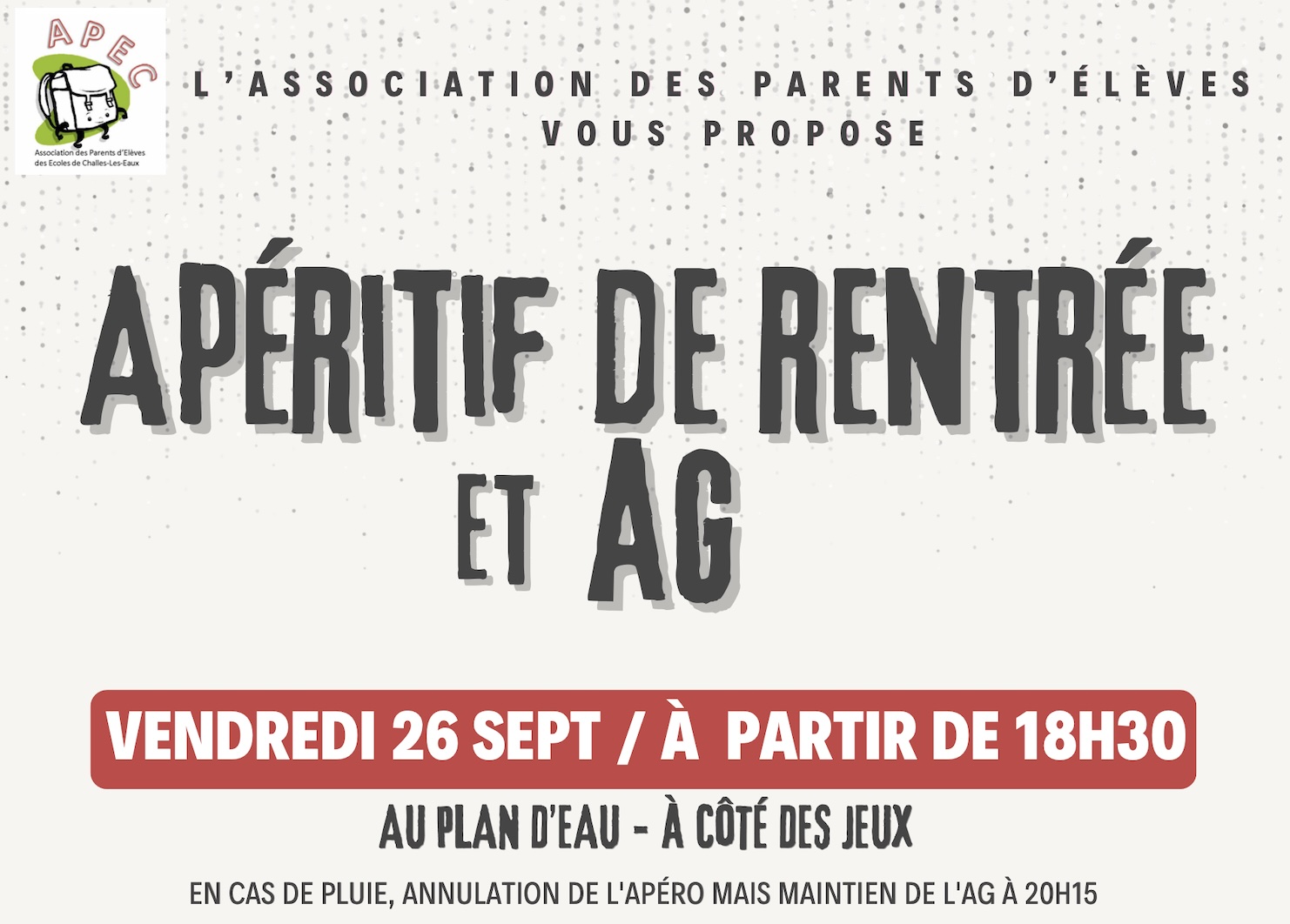 Nous vous proposons de nous retrouver le vendredi 26/09 pour un apéritif convivial avant l'asse…