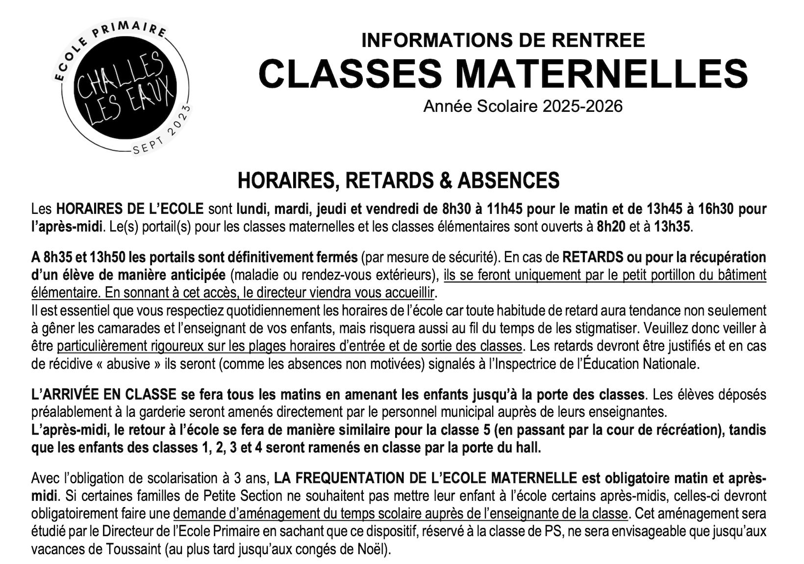 Ci-joint un document important pour les parents et futurs élèves de Petites Sections à la rentrée 20…